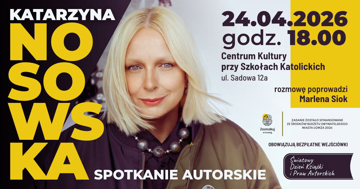 24 kwietnia 2026 r. (piątek) o godz. 18.00 zapraszamy na wyjątkowe spotkanie autorskie z Katarzyną Nosowską jedną z najbardziej rozpoznawalnych i cenionych artystek polskiej sceny muzycznej i...