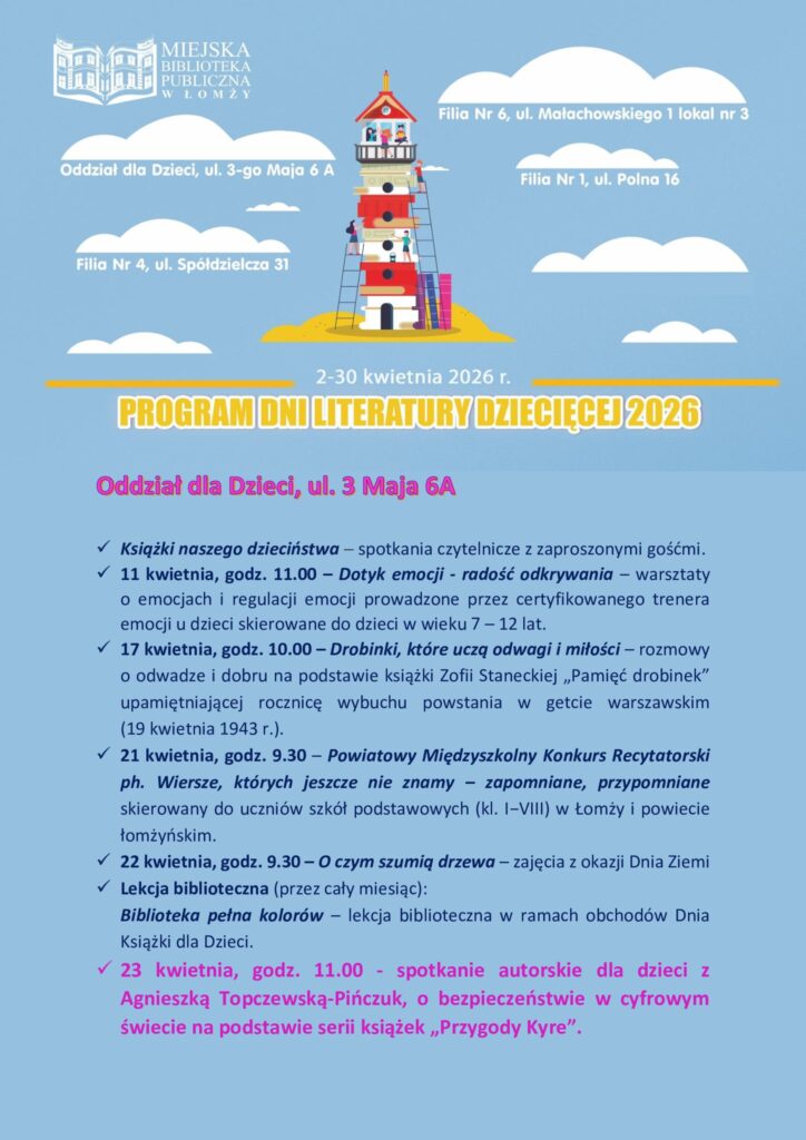 Spotkanie jest organizowane w ramach Dni Literatury Dziecięcej 2026.